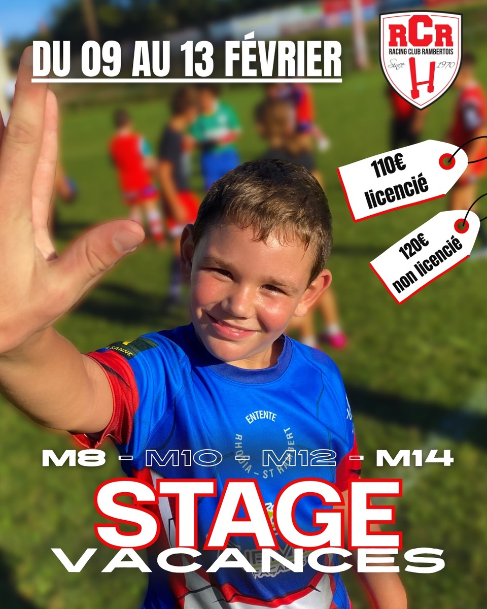 Si votre enfant à entre 5 et 14 ans, Le Racing Club Rambertois, Club de Rugby de la Commune organise des stages pour les enfants et les jeunes pendant la semaine 7 entre 9H00 et 17H00. (Multi-activités avec repas)